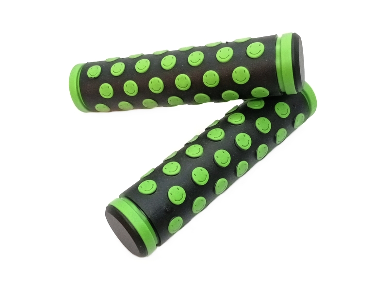 Jalgratta käepidemed roheliste täppidega. Pikkus 125 mm.