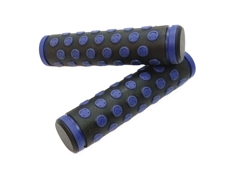 Siniste täppidega jalgratta käepidemed. Pikkus 125 mm.
