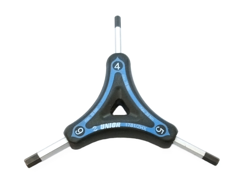 Unior kuuskantvõti 1781/2HX. Võtmel on kolm kuuskanti – 4 mm, 5 mm ja 6 mm. Valmistatud tugevast tööriistaterasest. Ergonoomilise kujuga libisemiskindel käepide tagab mugava ja kompaktse haarde. Kvaliteetne materjal tagab tööriista pika eluea. Sobib professionaalseks kasutamiseks.