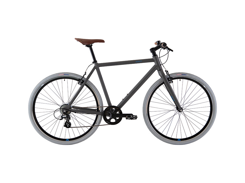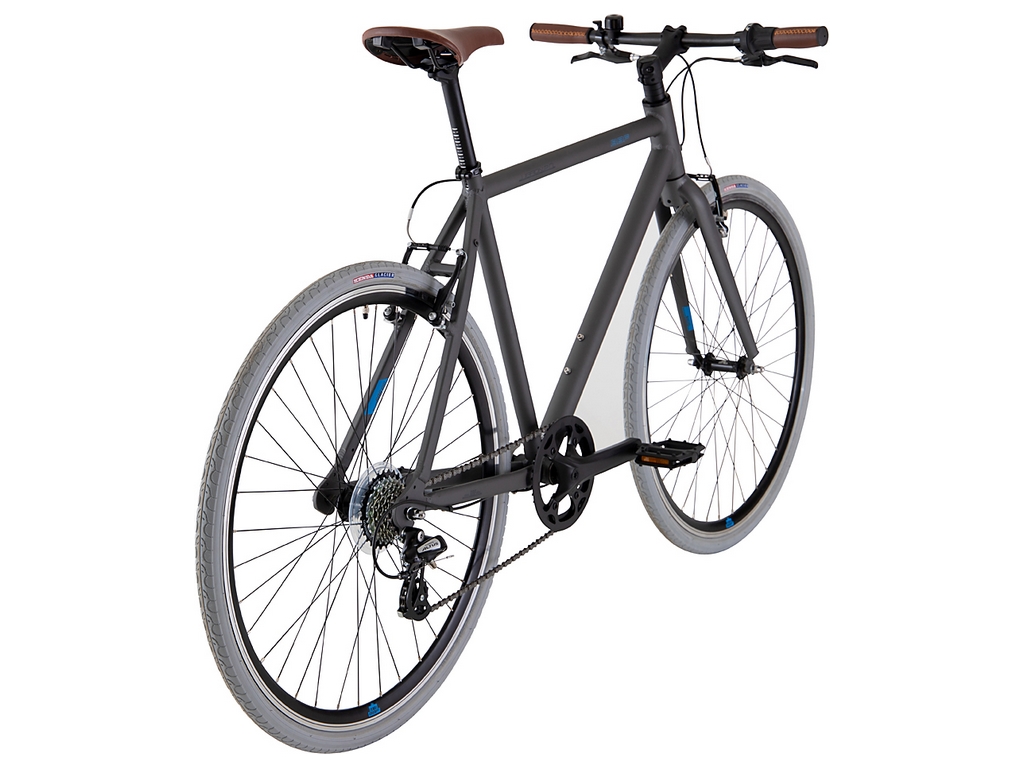 Jalgrattal on alumiiniumraam, 28-tollised jooksud, Shimano käiguvahetus 1×7 käiku, V-pidurid, kõrged kahekordse seinaga pöiad, neetidega sadul ja kunstnahast käepidemed.