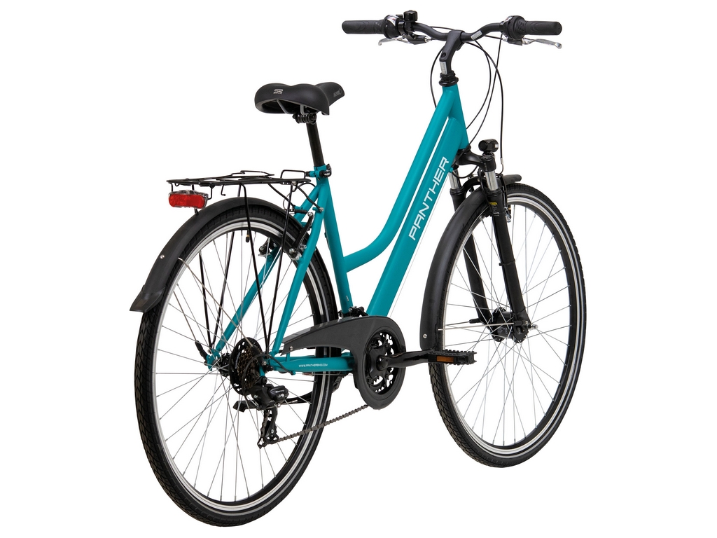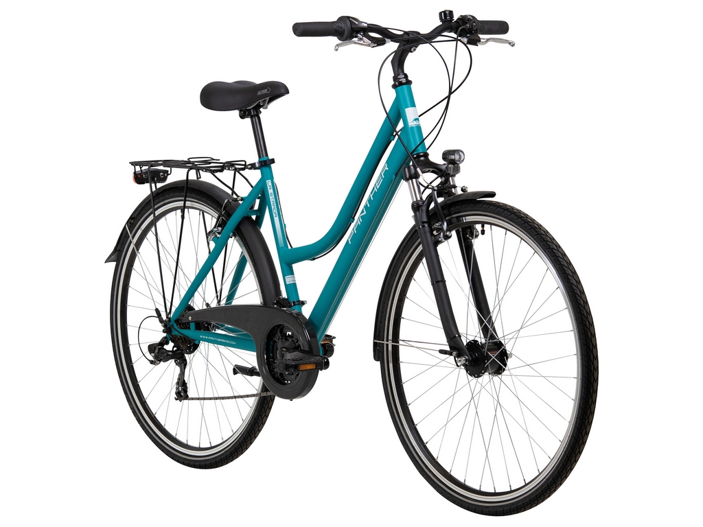 Naiste matkaratas 28″ 21 käiku Panther Laval 1.0, türkiis. Raami suurus on 19 tolli. Sobib sõitmiseks nii matkaradadel kui ka linnatänavail.