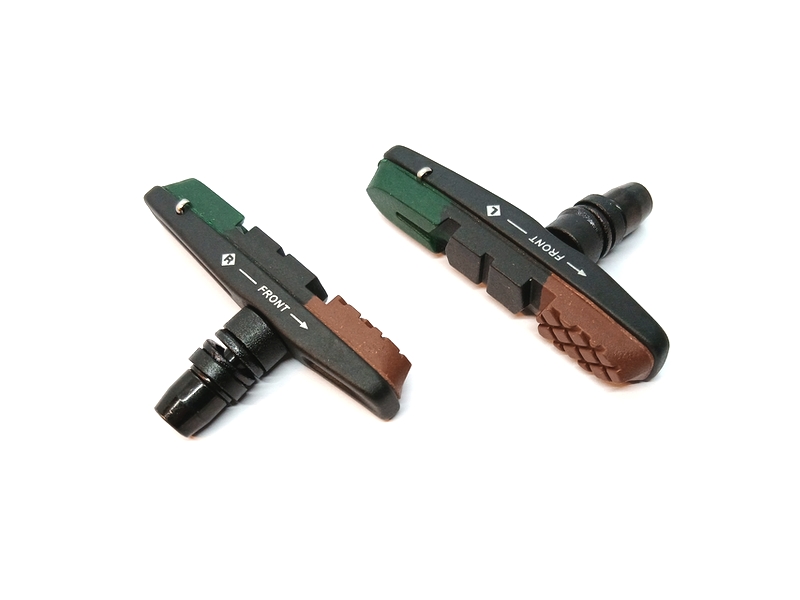 Piduriklotsid V-pidurile 72mm Alhonga HJ-748.13A pruun-must-roheline, vahetatavate kummidega