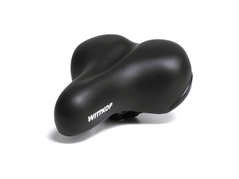 Lai ja pehme jalgratta sadul Wittkop Big, must. Sadula pikkus on 255 mm ja laius 210 mm. Põrutust aitavad vähendada geelpolster ja sadula all olevad elastomeerid. Mõeldud sõitmiseks püstises sõiduasendis. Unisex versioon, mis sobib nii naiste kui meeste linna- või matkaratastele.