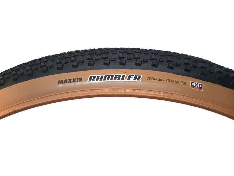 Pruuni küljega väliskumm 28 tolli Maxxis Rambler EXO. Rehvi laius on 45 mm. Maxxis Rambler on universaalne kruusarehv (Gravel).