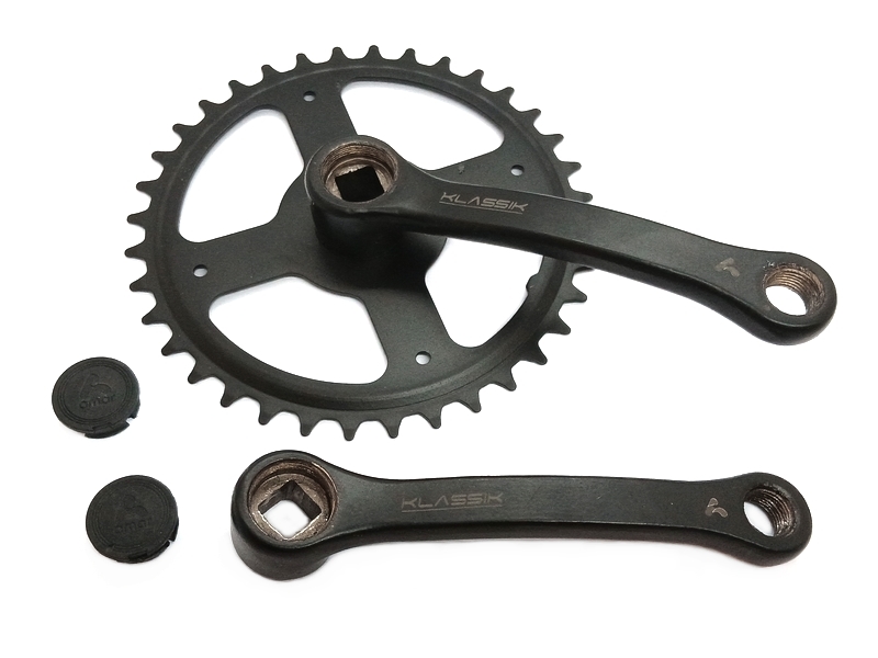 Komplektis on hammasratas, parem ja vasak vänt ning vändakorgid. Vändad ja hammasratas on mustast terasest.